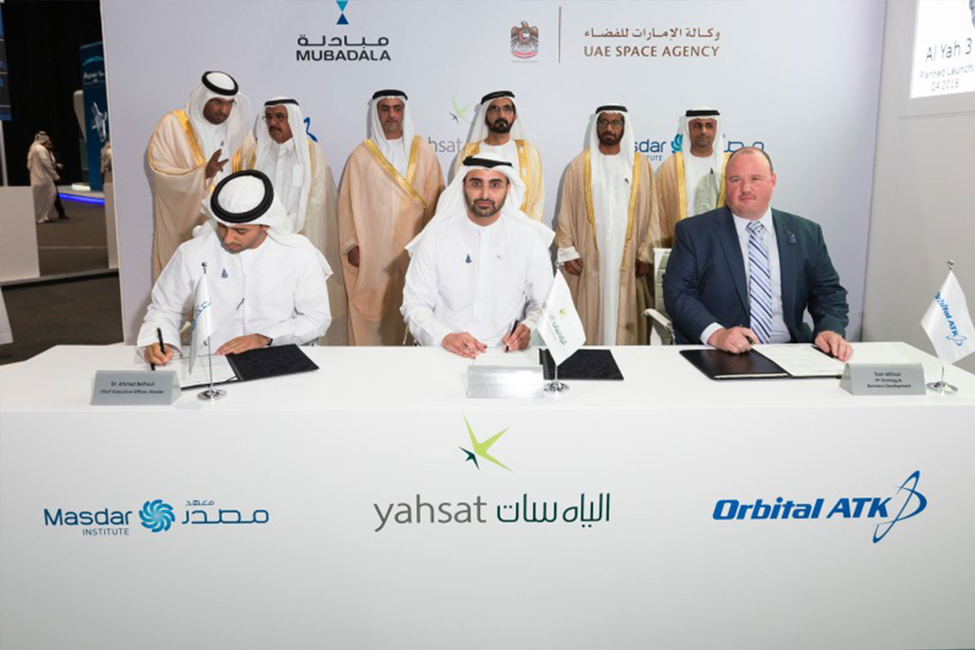توقيع مذكرة تفاهم لإطلاق ماجستير دراسات علوم الفضاء المتقدمة في تفوق جديد لدولة الإمارات ، بتعاون بين "الياه سات"، ومعهد مصدر، و"أوربيتال أي تي كي" ودعم وكالة الإمارات للفضاء